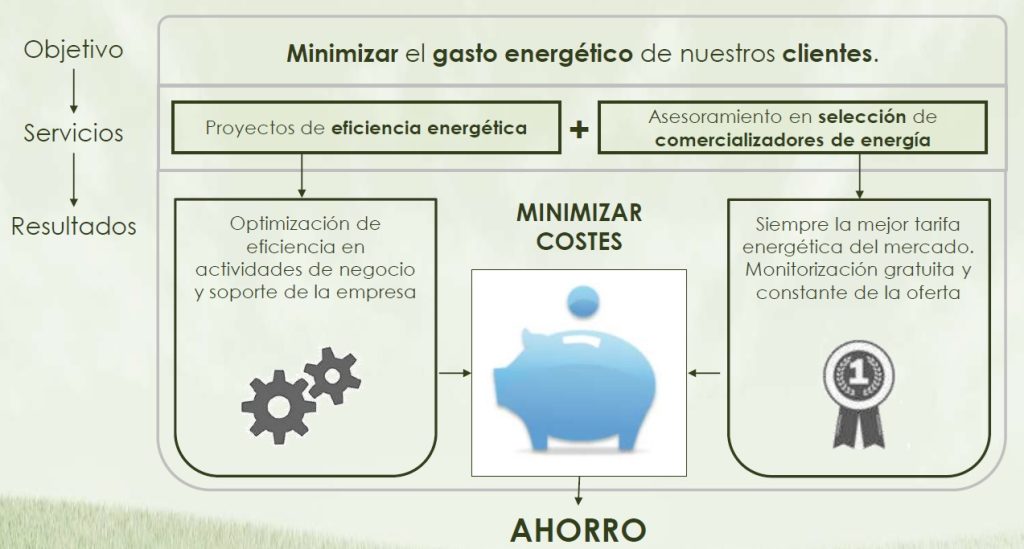 Nuestro objetivo principal es minimizar el gasto energético de nuestros clientes y maximizar los beneficios que podemos brindar con nuestros proyectos de eficiencia energética y asesorías en cuanto a la elección de comercializadores de energía.